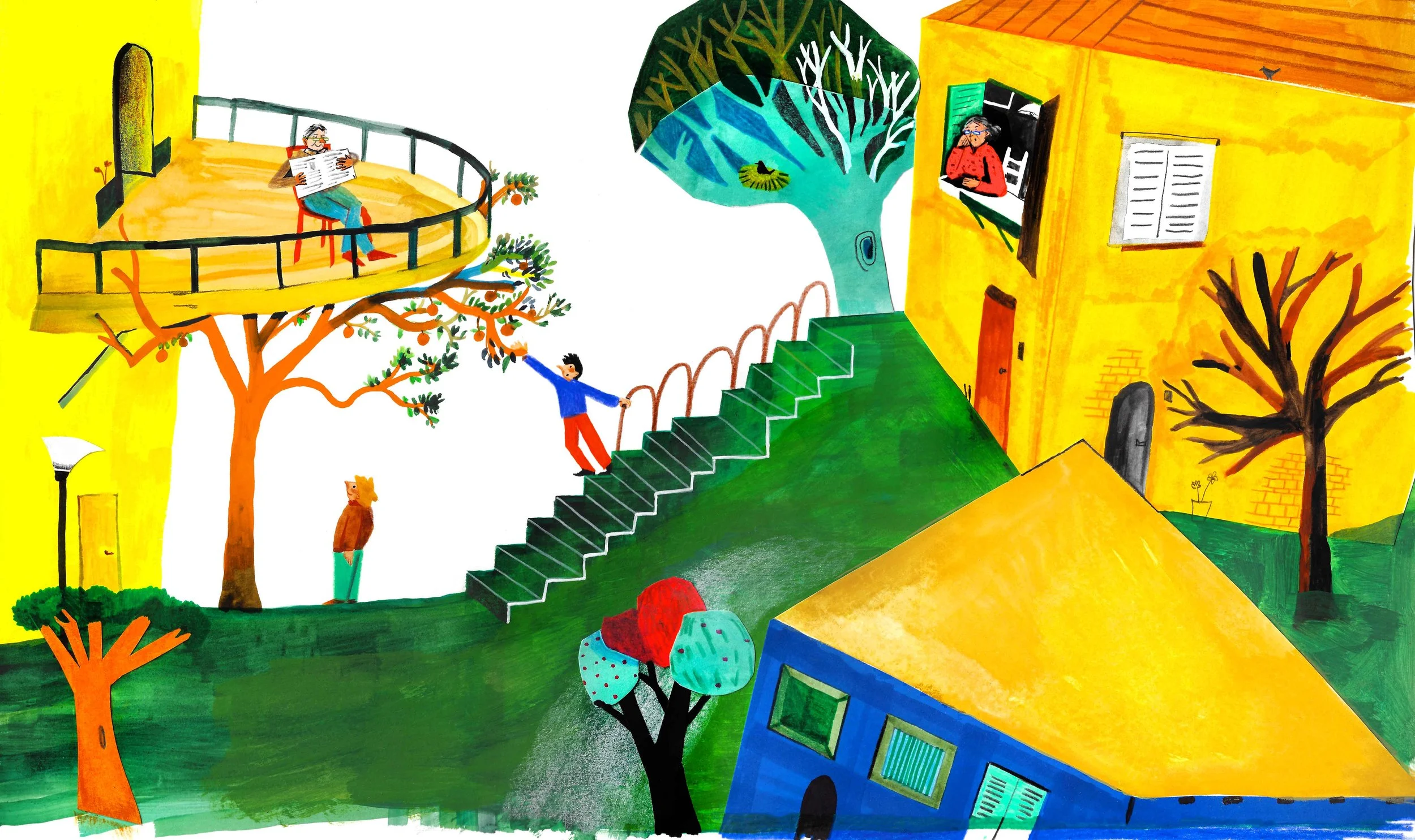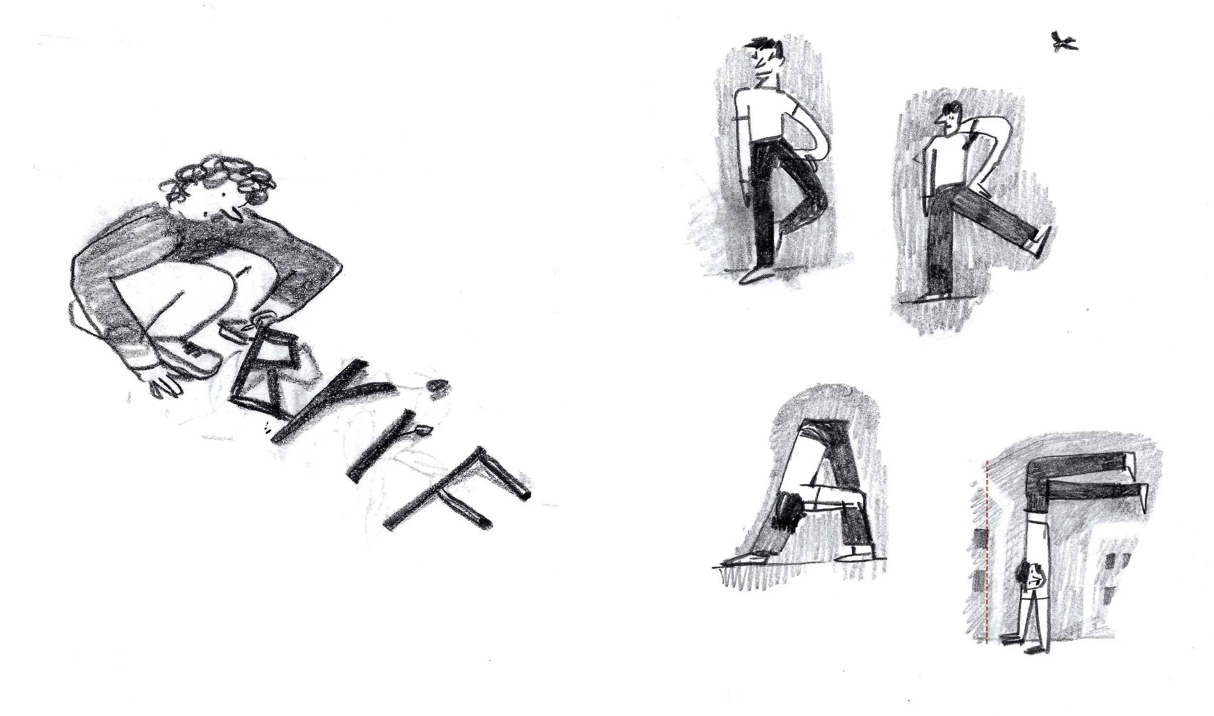 Ho immaginato scene di gioco tra i due bimbi, che pian piano conoscono gli adulti della storia…