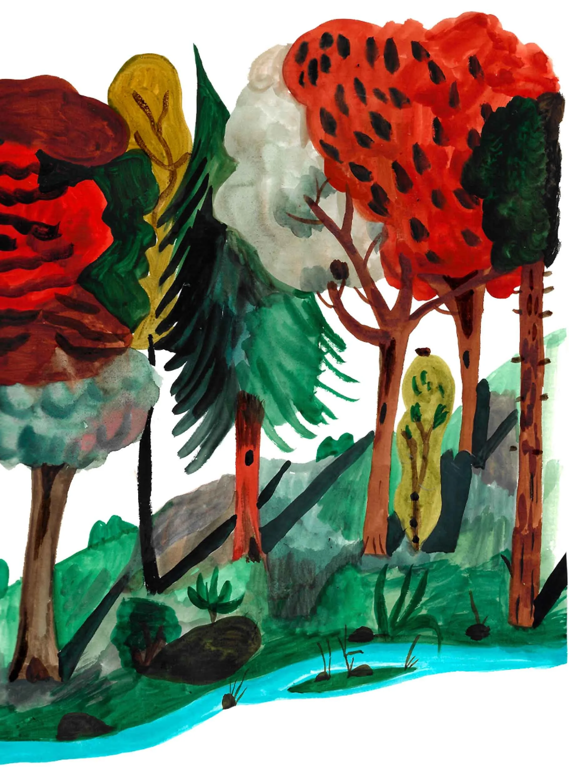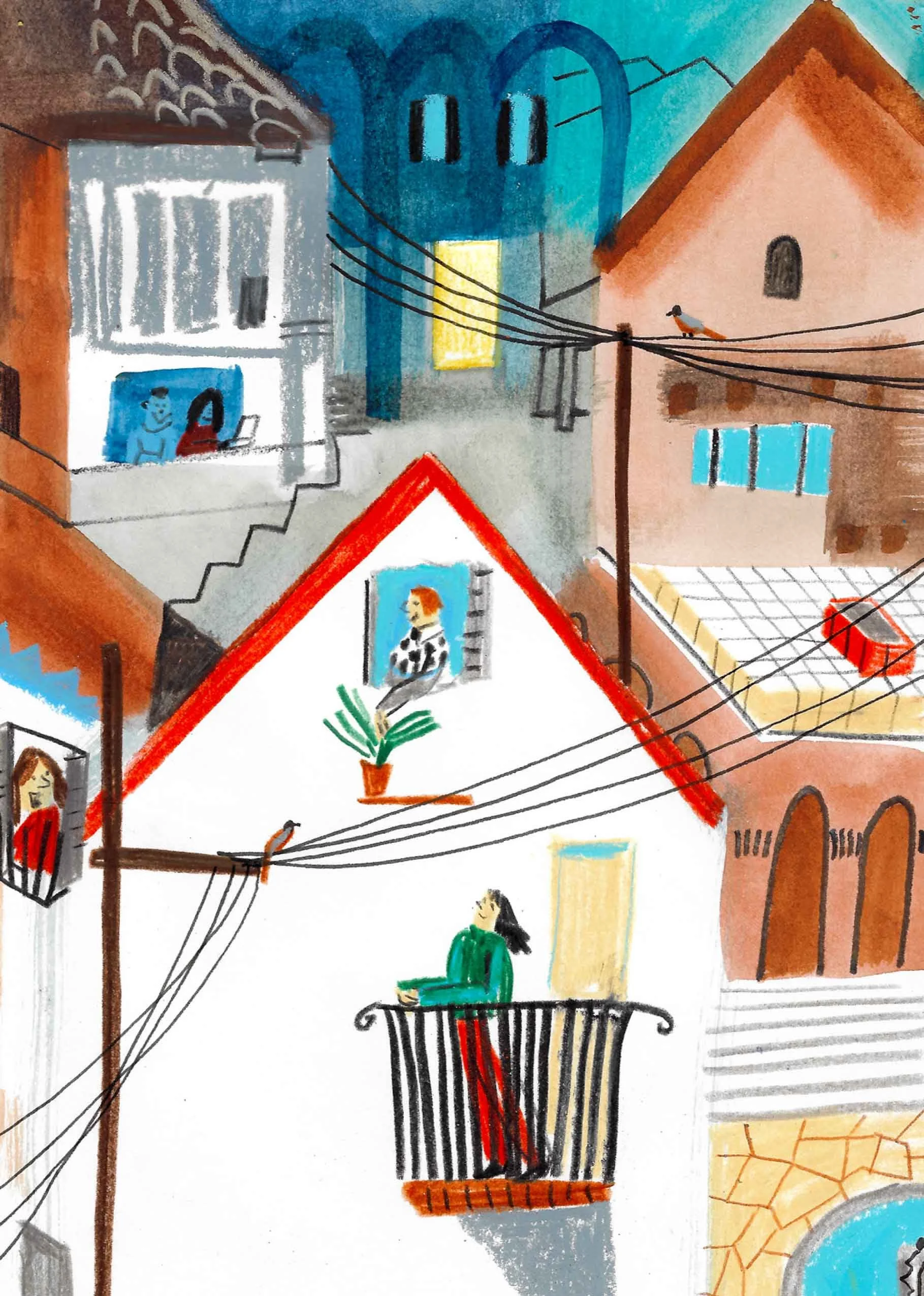 I disegni per questo progetto sono stati realizzati a mano, utilizzando tecniche miste.