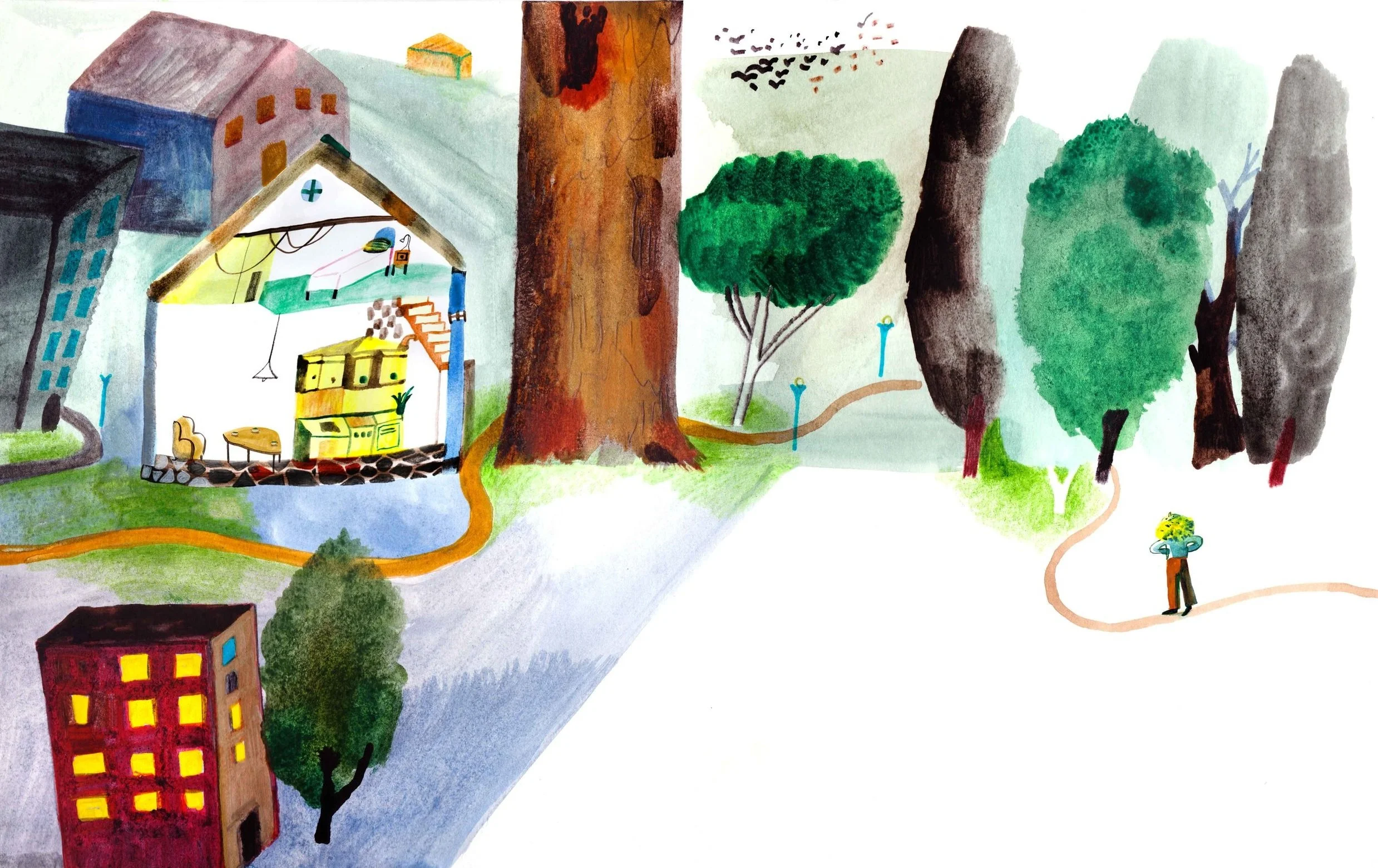 Ho deciso di utilizzare tecniche diverse, come pittura, acquarello, matite, pennarelli, ma anche collage di carte diverse, sfumature, texture.