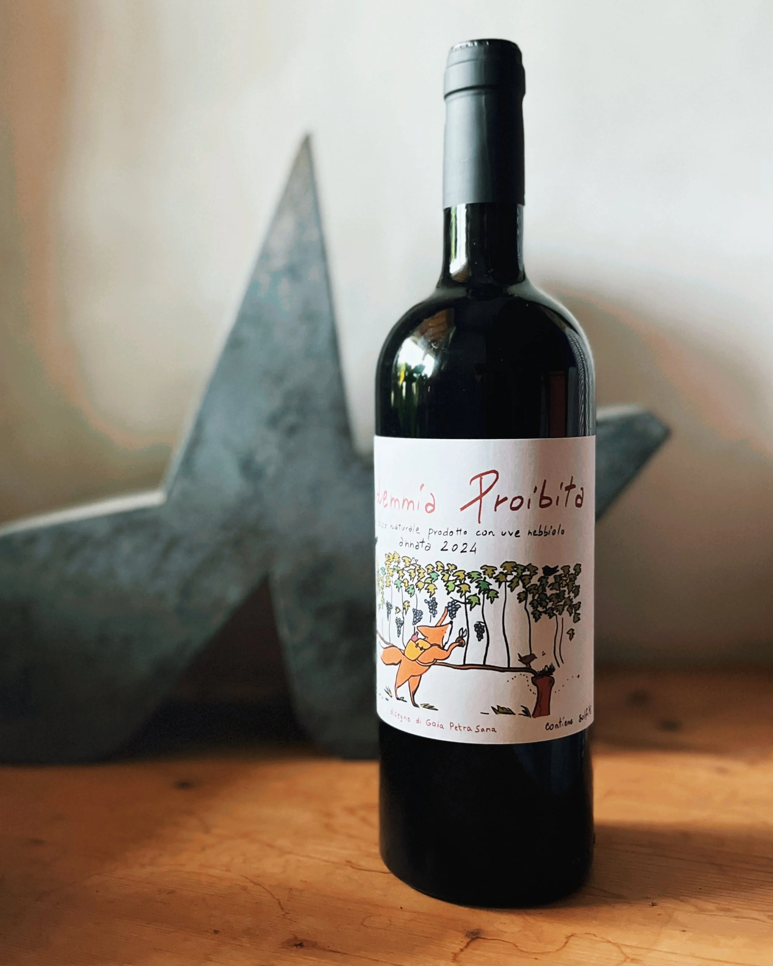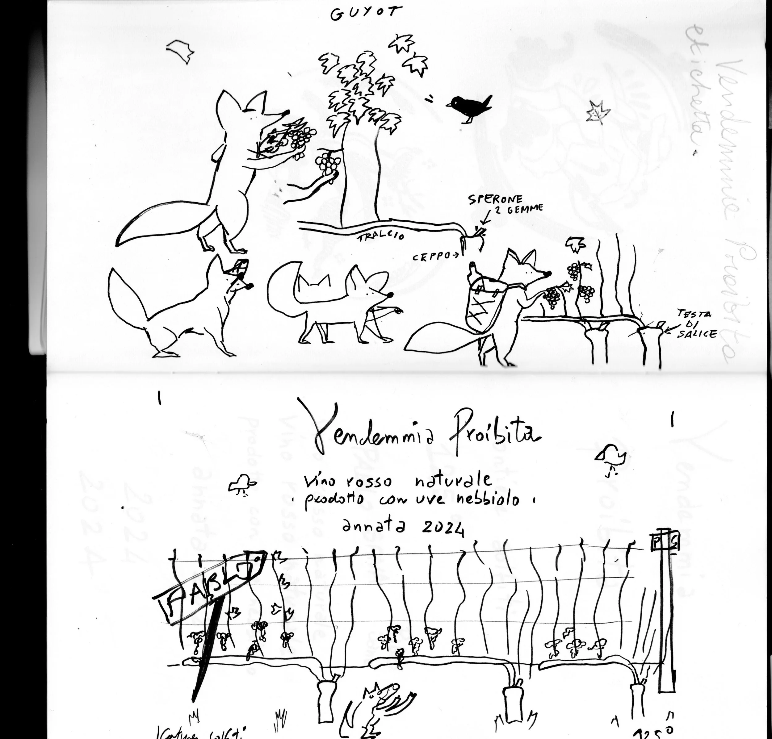 Ho realizzato l'etichetta per Vendemmia Proibita, un vino rosso naturale autoprodotto nelle Langhe, ottenuto da uve Nebbiolo.